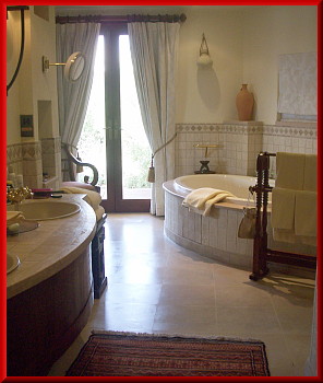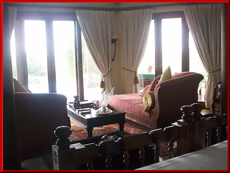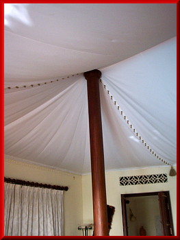 | The bedroom-living room space was quite elegant ... and the ceiling was draped in fabric to convey the illusion of being in a sheikh's tent. |