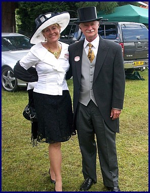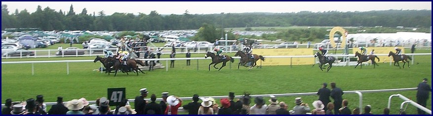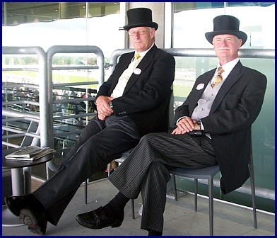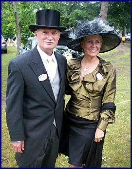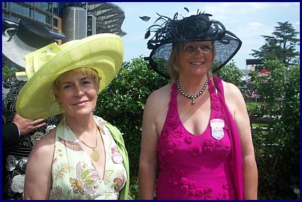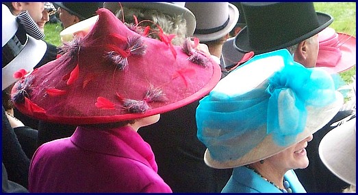 As I mentioned last year ... Paul & Prue have a private box in the Royal Enclosure. Actually... Simon Cowell ( American Idol ) has the box next to Paul's . He recognized Roy & me ... so we all had a nice chat about how nice it was to get together again, etc, etc. He's quite delightful & funny to talk to ( as opposed to how obnoxious he is on the TV program ) Anyway .... this year ... we made more forays thither & yon , so I could get closer shots of the horses & the races. ( which from time to time got a bit tricky ... because it rained at least part of the day .... every day. ) |
