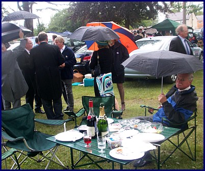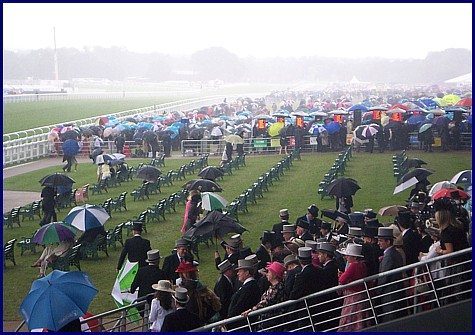 TOLD YA !!! One minute it would be lovely .... the next , the sky would just open up. But when it comes to horses ... NOTHING stops the Brits. |