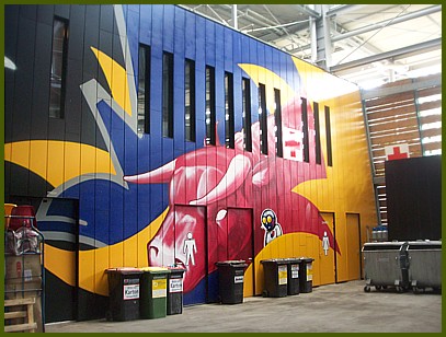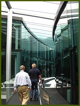 As we progressed to the computer operations & office areas ... we were able to get rid of our "gear" bit by bit. The 2 guys in the left photo are 2 of the Production Executives assigned to guide us around. |