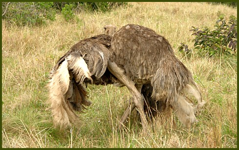Part of the mating ritual is to wander around with wings fluffed out. |