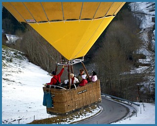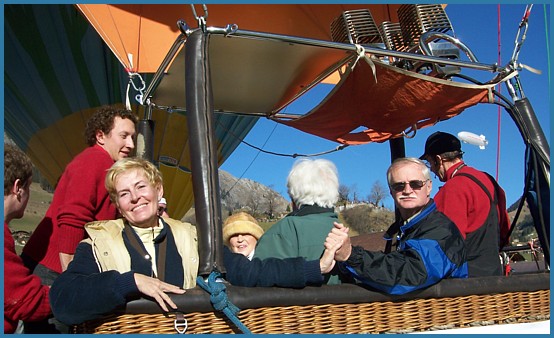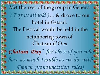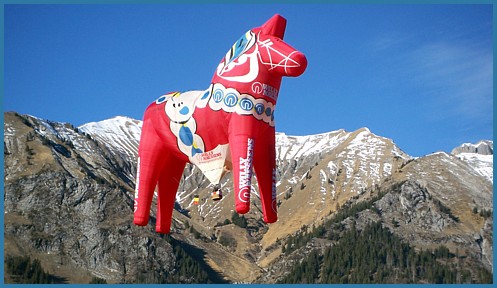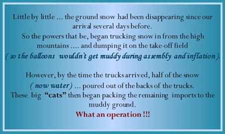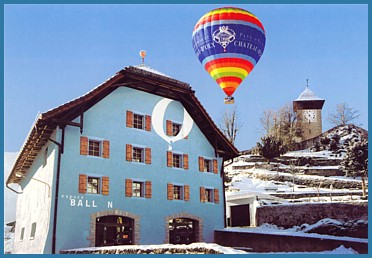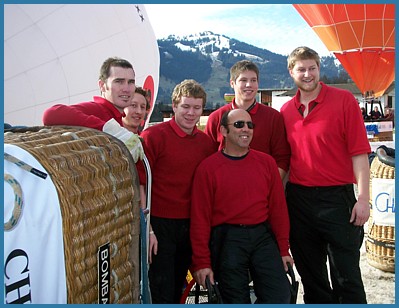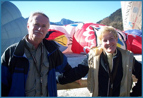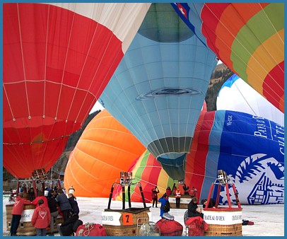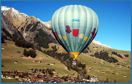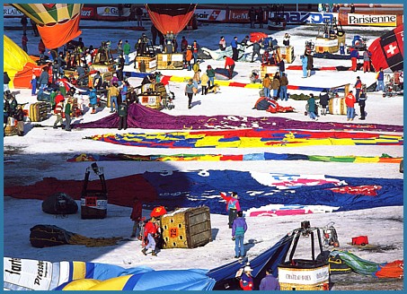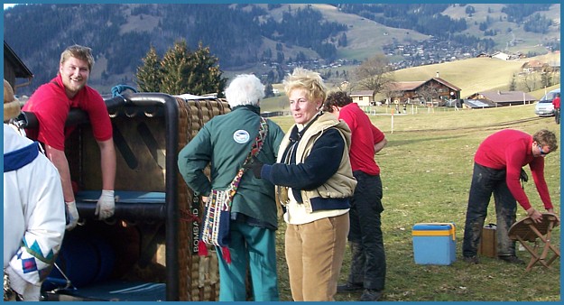 FIRST BALLOON RUN Up early for a trial balloon run on our first full day in Gstaad. The weather reports were full of dire warnings all across Europe ... so we were eager to get in the air while we could. ( hoping the weather gods would smile on us & permit fair winds to blow for the festival ) |
