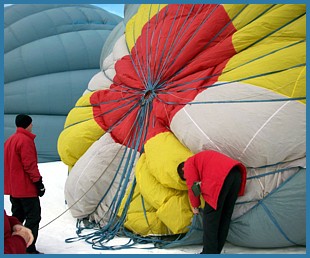 These photos show part of our "ground crew" and one of the pilots. Have to to give our ground crew GOLD STARS for "Hands Across The Sea" actions. Instead of lolling around waiting for us to ascend .... they helped 20 other balloons take to the skies. WHAT GOOD BOYS !!! |