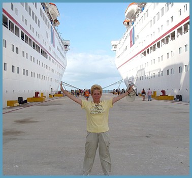 Since Roy's 98 year old father doesn't like to fly ... we're pretty much locked into week long cruises of the Caribbean, leaving from either Galveston or Houston. You may notice the that size of the ship ( Carnival's Ecstasy ), doesn't exactly fit the expedition type of travel that most of us prefer ... ( and we've done the Caribbean so many times that we should be conducting the tours instead of being mere passengers ). However ... the point of the get together , is having an enjoyable experience as a family ......not the destination . |
