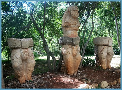 As our guide pointed out .....notice the head-dress on this figure. See any similarity to the ones found in ancient Egypt ? The center "medallion" on the forehead , when viewed up close, has the remnants of a snake. Hmmmmmmmm. |