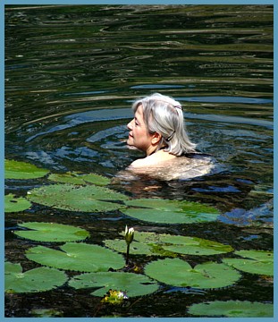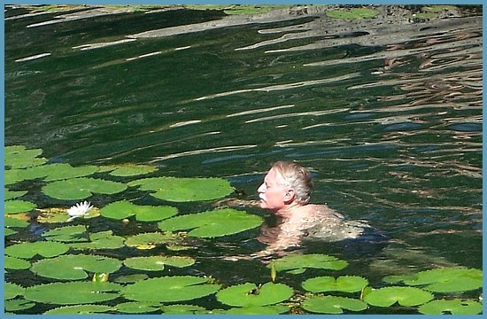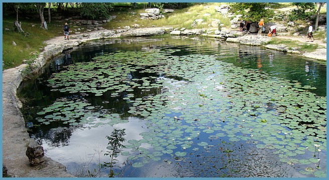 ..... And we found an ancient "cenote" that was suitable for swimming We found the water a bit "brisk" ( Texas acclimated, you understand )... but Marj & Will jumped right in. ( but then, they're from New Hampshire ) |