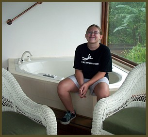 In addition to a monster-size bedroom ... we had a living rm. with fireplace ... and a bath with a fantastic view, seating area, massage bed & Jacuzzi tub |