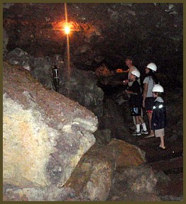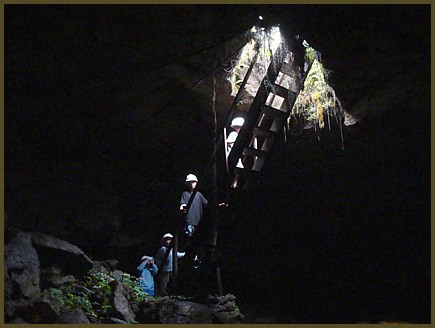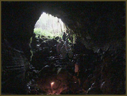 Here are entrances to two of the lava tunnels we explored - once we got under ground .... in addition to a photo taken while in one of them. |