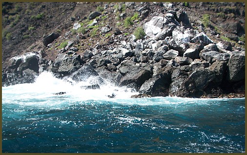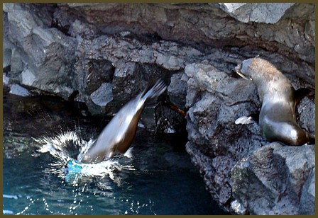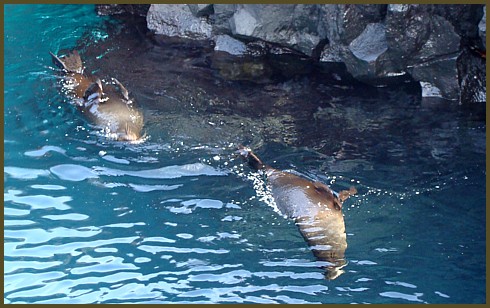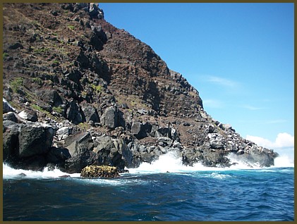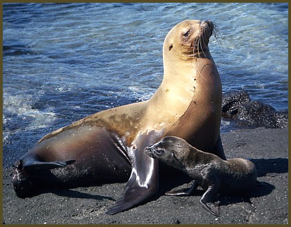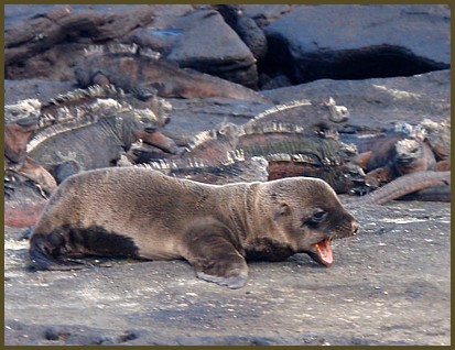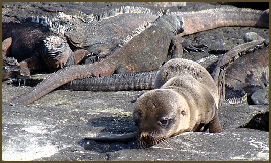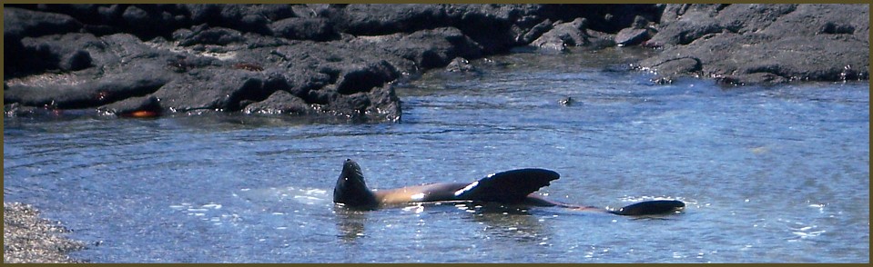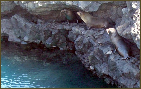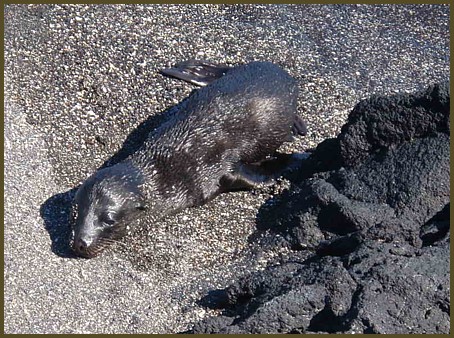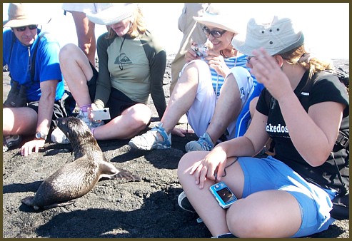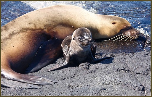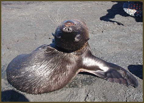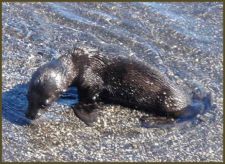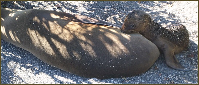 We were just sitting there watching "big seal antics" ... & this little pup left his mom & crawled up the rocks ... to check us out. Very curious ... and absolutely no fear what-so-ever. |