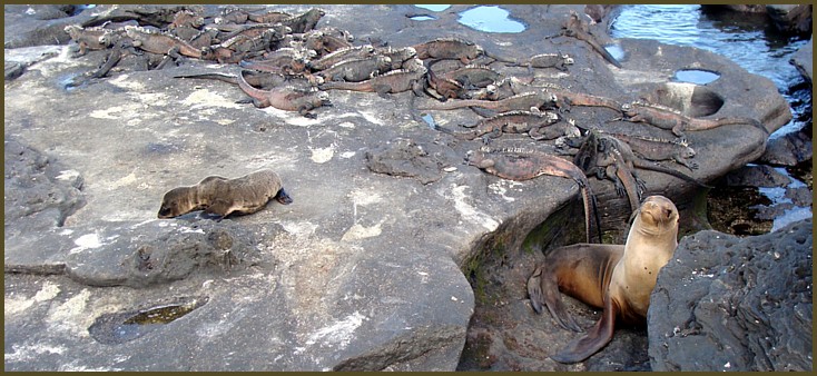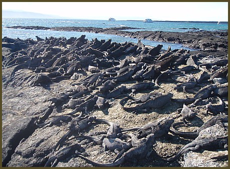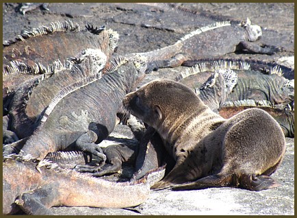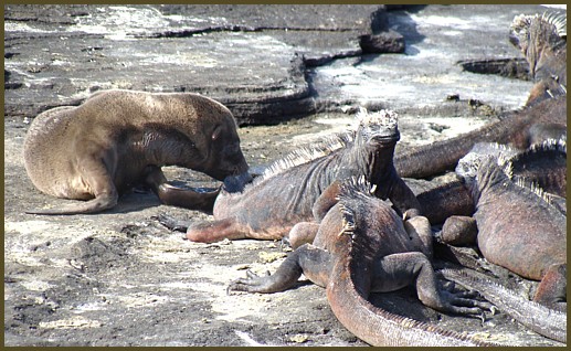 We were just hysterical watching this little tableau unfold. The little one started to wander off ....... mom called ... baby ignored her & proceeded to visit with the iguanas. We could tell that the baby really wanted to play with the iguanas ... but the iguanas weren't at all interested. After several attempts ..and failing to get their attention .... the baby made this pathetic little whimper and wandered back to mom. He just looked soooo dejected. |