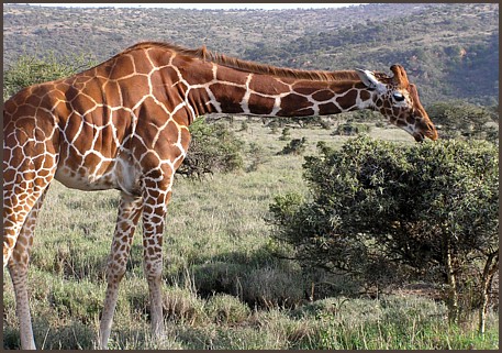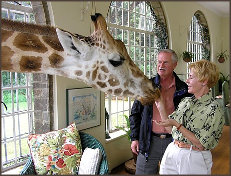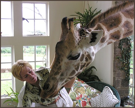 These were taken at a reserve not far from Nairobi. Gives a whole new meaning to the phrase ..." Look ma... what followed me home ". She just stuck her head right in thru the window of the tea room to get scratched. She's not a pet by any means .... but I think this takes the term " Habituated" to a whole new level. |