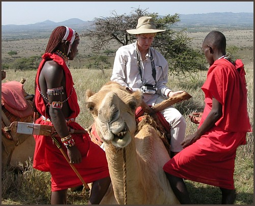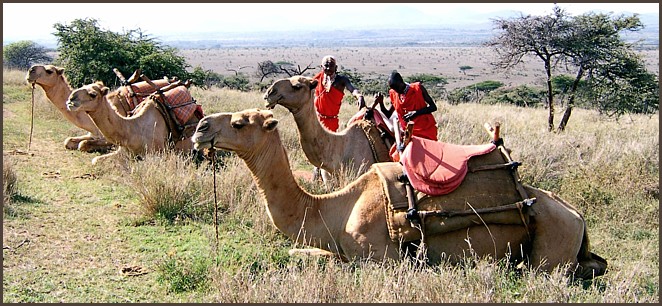 Aaaannnnnd .... They're Off !! This is a fantastic way to view animals ... because there are no restrictions as to cross-country wandering . Vehicles have to stay on a path, so they don't disturb any nests in the grass. You can also get closer to the wildlife because the horses and camels are accepted as "one of the guys". |