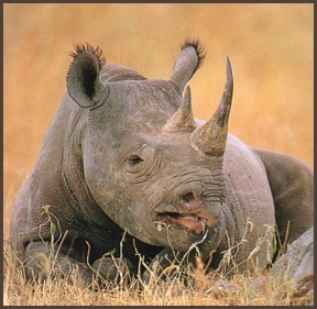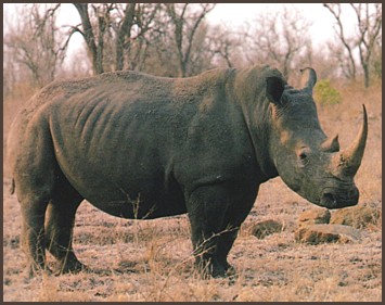For those of you who are confused about how to tell the difference between the Black Rhino vs. the White Rhino ( since both are the same color ) ... here's a clue. Look at the mouth. The Black Rhino mouth is rounded. And as you will see in the next 2 photos .... the White Rhino mouth is more squared off |