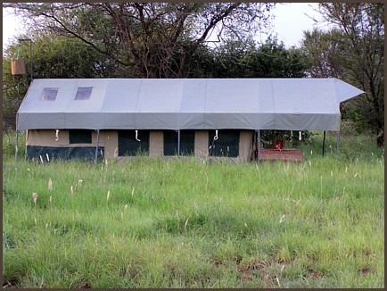 Our Tent ..... the brown bag on the left holds the water for the shower. |