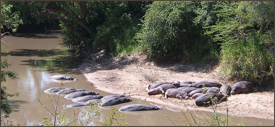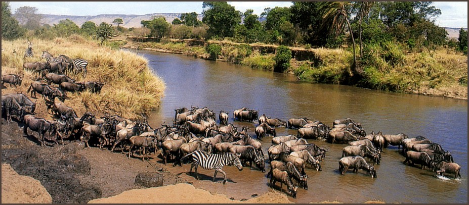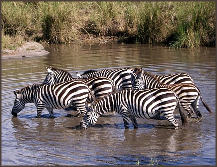 Grumeti River ..... No.... it's not quite time for them to make the crossing. These guys are just coming down for a sip or two. |
