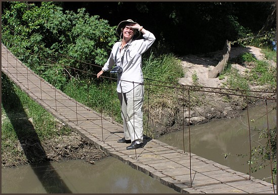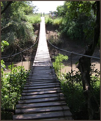 Swinging Bridge Across The Grumeti River ..... This is a narrow portion of the river you see the Wildebeests making a mad dash across in all those wildlife documentaries. |