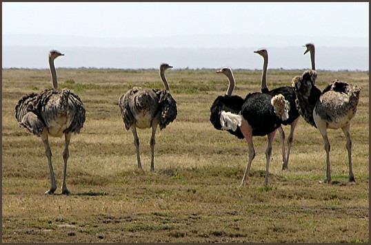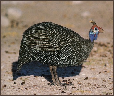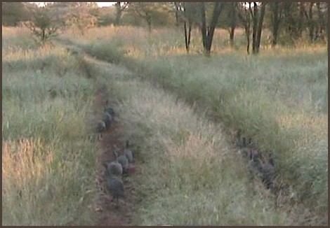Guinea fowl are really strange. They can fly ... but prefer not to. They'd rather try to outrun the jeeps ( and they won't get out of the way either ). |