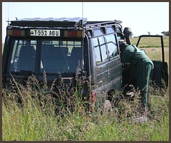 And THEN ... The jeep got stuck in the mud ( in the middle of cheetah country ). Well.... at least it didn't sink. |