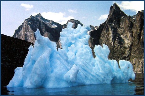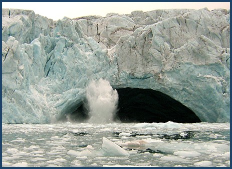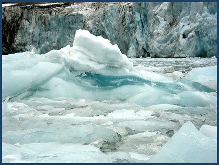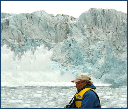 After a bit ... with the calving increasing .... the chunks getting bigger .. as well as the wave action ( fun as it was ), we decided the better part of valor was to "get out of Dodge" .... and go play someplace else , before we became part of a minor tsunami.. |