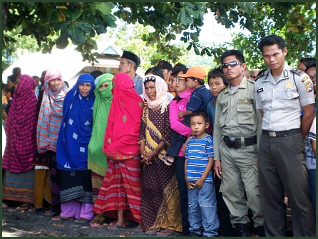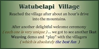 There are about 500 people in the village. As you've probably gathered ... from the dress ... the people are Muslim. ( kind of ). They've mixed in a bit of Christianity ... some ancient island beliefs ... and a little of this & that. They're pretty easy-going about the whole thing. |