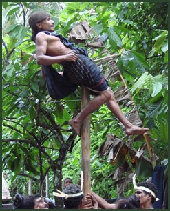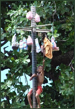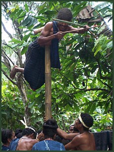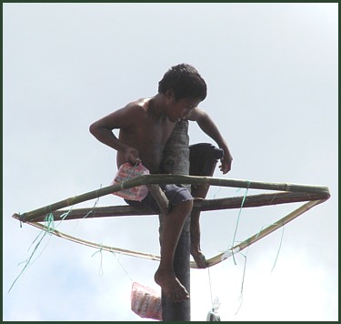 The "pole" is a 20 foot high greased coconut trunk. ....... and yes .. that's one of our guys on the far right. |