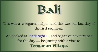 The 2nd Segment of our trip began here ..... in Denpasar ... Bali's capital . We spent the day visiting the surrounding areas of that city ... as well as the Ubud area. |