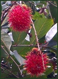 One of our favorite fruits is Rambutan. Quite tasty once you get past that spiky outer shell. ( unlike "Durian" ..it doesn't have a disgusting smell ) |
