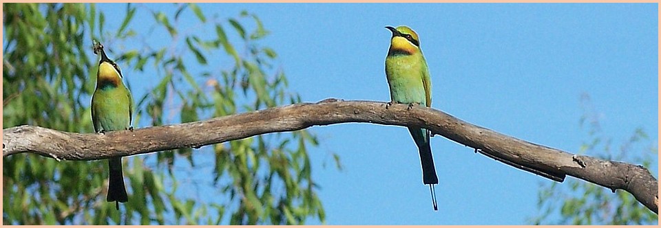 Bee Eaters .... you can see the one on the left is munching on a bee |