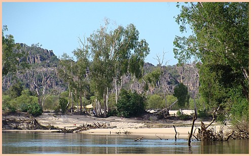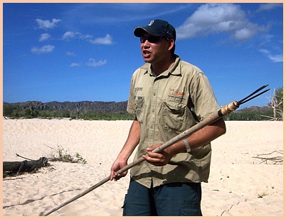 We arrived at this camp-site ... where one of the guides gave us a "hands-on" experience in the uses of 12 different kinds of Aboriginal weaponry. They came to the conclusion , that in a pinch ...... I'd either starve to death or get killed. |