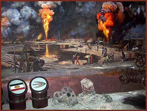 There were several galleries of photos .... each devoted to a different "theme". These came from the "Oil Fire" gallery. The photo on the "left" is an aerial view of the extensive oil fires. |