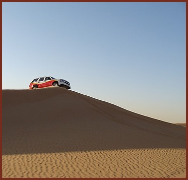 Dashing up to the peaks of the dunes & balancing precariously on the high ridges ..... before rapidly dropping down into the "valleys" was great fun !!! But the Great Wizard has proclaimed that everything comes with a price ... and we got A FLAT !! |