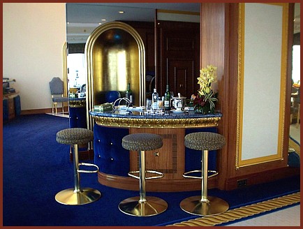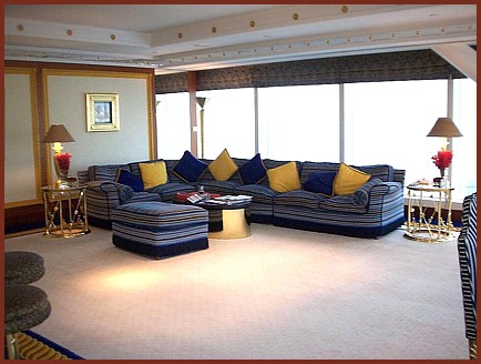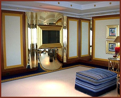 In fact ... ALL of the electronics were "state of the art". Remotes for window tint - shades - security cameras at the door - TV - air - intercom - special phone lines for the butler, floor security, spa & front desk - & an infinity of light combinations. |