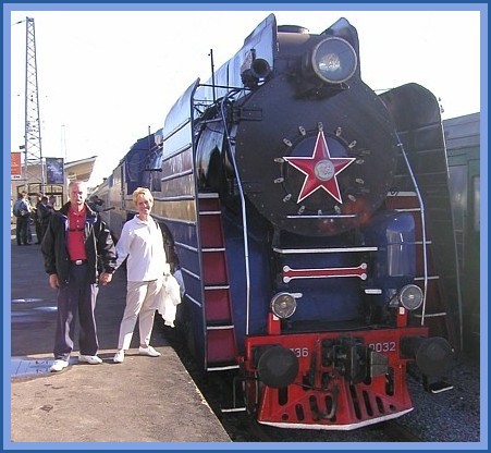 To quote a famous author: "There is no rail journey of comparable length anywhere in the world. The Trans - Siberian is the big train ride. All the rest are peanuts." So.... 50 of us ( mostly British) set off on a long journey in our private train .. first by steam (shown at right) .. then switching to electric .