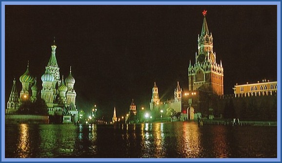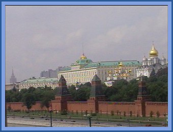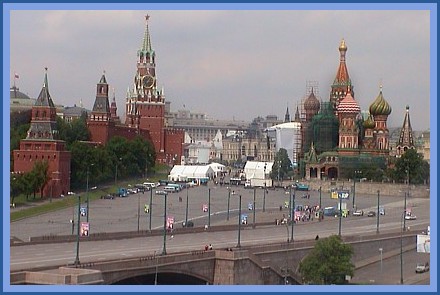 Here ... you have the view of the Kremlin and Red Square ...as seen from our window at the Kempinski Hotel. It was really great being this close, because all we had to do to be in the thick of things, was just walk across the bridge. Now....you might wonder what the white tents are for, at Red Square ??? Wellllllll ....Paul McCartney was giving a concert in Red Square, on our 2nd night there. As a matter of fact .... his suite was directly above ours ......so there were screaming fans with cameras, outside of our window most of the time. Bothersome ? Nah. I just waved back. Actually, it had it's pluses. The night of the concert, we just opened the window & listened to the entire thing, free of charge. The fireworks at the end were magnificent. But Lenin must have been having a major hissy-fit. |
