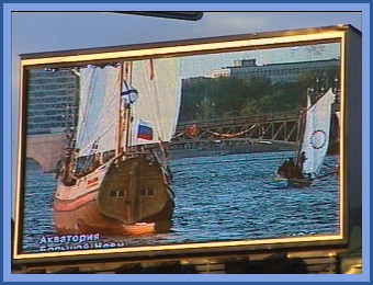 These huge digital billboards had been installed all over the city, so everyone could see the mock battles, activities and celebrations that were taking place on the river. |