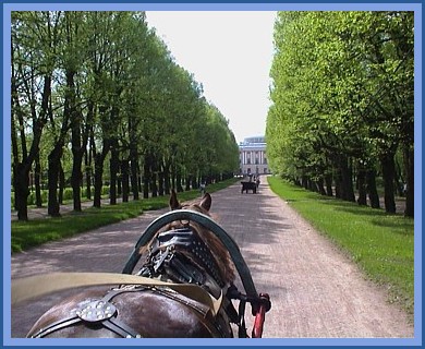 Our horse-drawn carriages took us thru the delightful shaded lanes of the palace grounds, along streams, and past tiny bridges and gazebos ... as we very elegantly made our way to the palace.