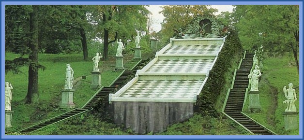 But the "showpiece" of the place is the Grand Cascade with it's waters flowing down a "sea canal", (lined with water jets) and emptying into the Gulf Of Finland.