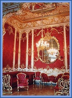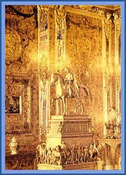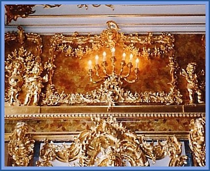 The AMBER ROOM This has been one of the most sought after and elusive treasures in ages. As you may or may not know, this room was covered in amber mosaic panels ... interspersed with long narrow mirrors, which reflected the light from gold candle wall sconces & chandeliers. Empress Alexandra likened it to being inside a giant jewel box.