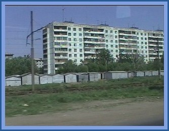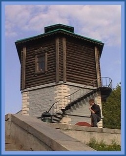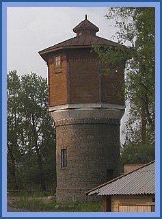 As the train rolled across the country ...there were many sights in between the cities, which gave "texture" to the nature of this vast country .... and added to our "rudimentary" understanding of the myriad cultures that are Russia. Even though we've been to various parts of Russia, 11 or 12 times ( we've lost count )....the word "rudimentary" is still appropriate. Winston Churchill hit the nail on the head, when he stated "Russia is a puzzle, wrapped in an enigma". Maybe that's why we're so fascinated with the place. Because a lot of these sights had a common thread throughout the entire trip, we were able to group them into various categories for you...and we've interspersed them throughout this "trip story". For instance: Water Towers which supplied water for the steam engines. These can be found along the tracks in a lot of the small towns. They're not used much any more since electric trains replaced steam. But the thing I could not figure out was ..... why are there windows and doors in the lower parts of these structures ? And interestingly enough ......no two looked alike. |