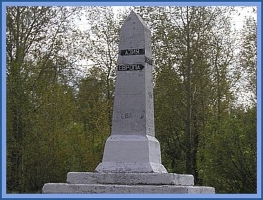 This marks the official division line between Europe & Asia (1,777 km or 1,104 miles east of Moscow ). Yekaterinburg is approx. 50 km. beyond this marker. |