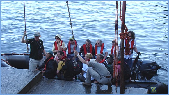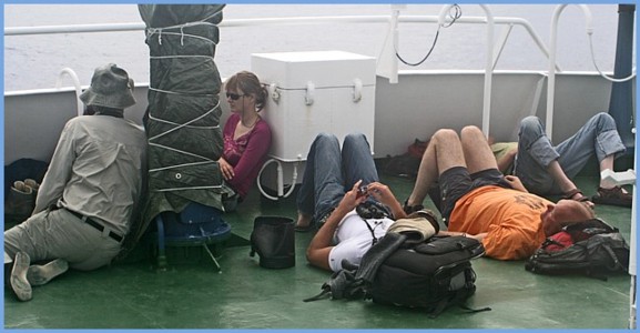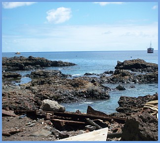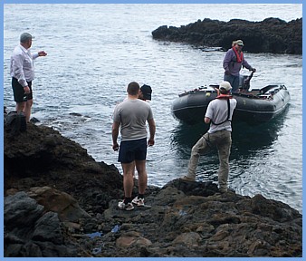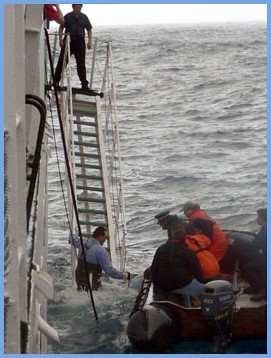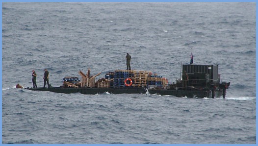 The men on the equipment barge made it back to the ship .... very wet & cold ... but the loaded barge didn't make it. |