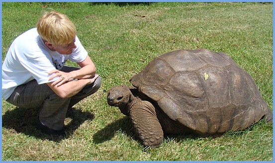 Johnathan and several other tortoises live on the grounds of the Governor's estate. |
