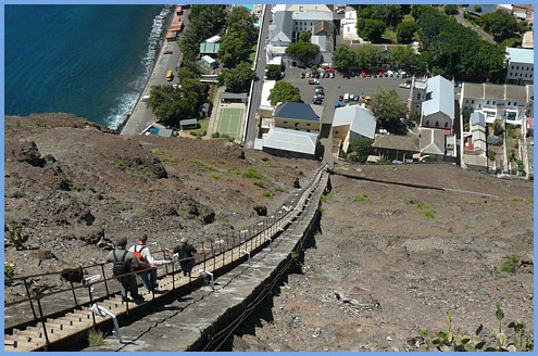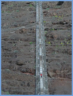 That's right .... that long white strip running diagonally from the cliff top is the "ladder" Did we climb it ? Are you NUTS ???!!! |
