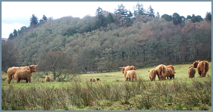 These are "Highland Cattle". Furry critters, aren't they ? |
