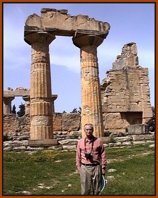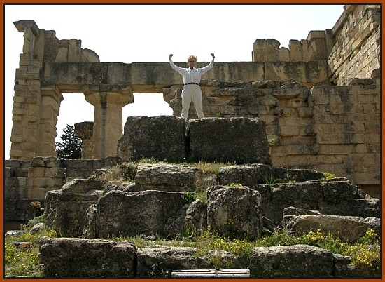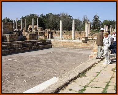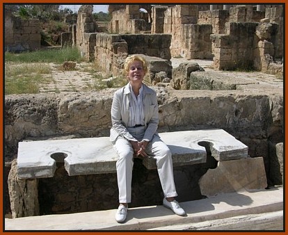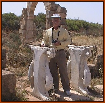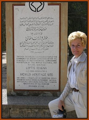 Oh ... one more "treat" for you . When we went to the site museum ...... we came across this gigantic poster-board cut-out of good ol' Muammar Qaddafi. I knew you would want us to "share". |