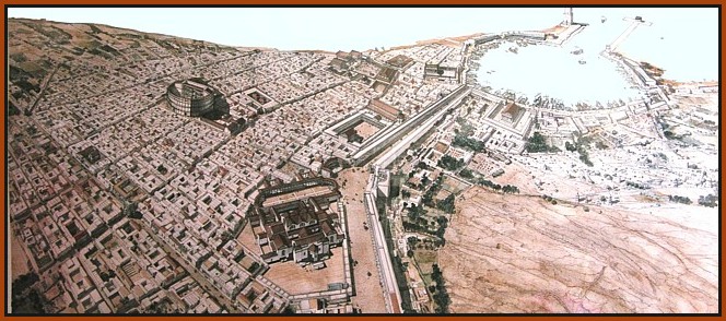 This is the archeologists concept of the layout of the city. There some speculation as to which was the bigger city ...... Leptis Magna or Ephesus in Turkey |