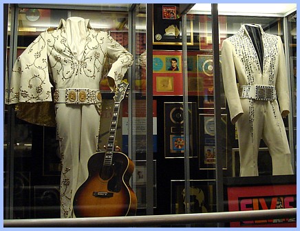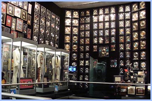 Inside The Trophy Building The original layout has been reconfigured in order to display the thousands of gold records he was awarded. It's truly mind-boggling !! It also contains other awards, etc ..... plus some of the outfits he wore in his movies |