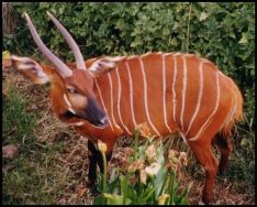 AFRICA..The rare Bongo. There are not many herds of these left. Once I made friends with this guy...he didn't mind if I petted the calf. |