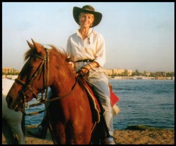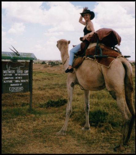 AFRICA...YEEE-HAAH !!! Off on a camel safari..with 3 others. Roy decided to stay at camp & film what could have been the last sight anyone ever had of me. I was so touched that he was concerned !! |