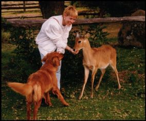 AFRICA...while I was petting a baby Impala...the camp dog decided he wanted some attention too. |